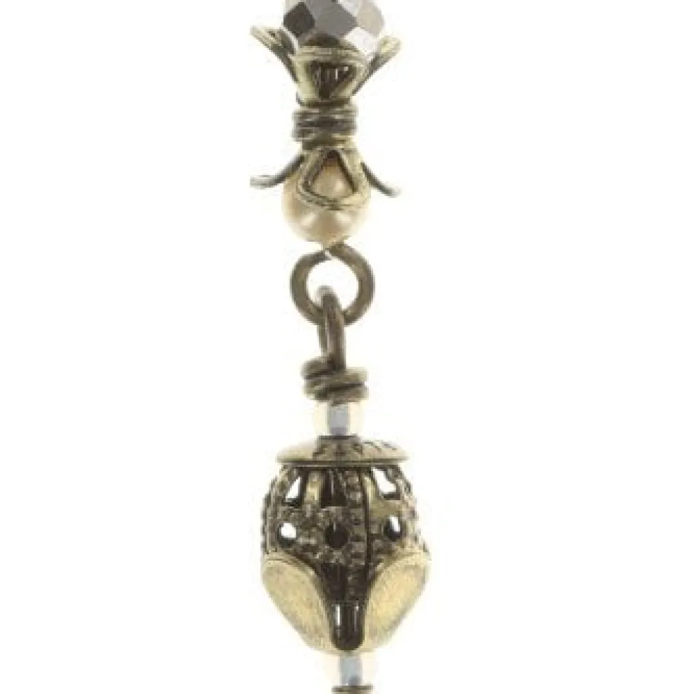 Lange oorbellen van Konplott, collectie ” Arsenic in Old Lace”.Lengte=7cmGrijzig met blauwe bloemetjes op het oor.Ecru f…