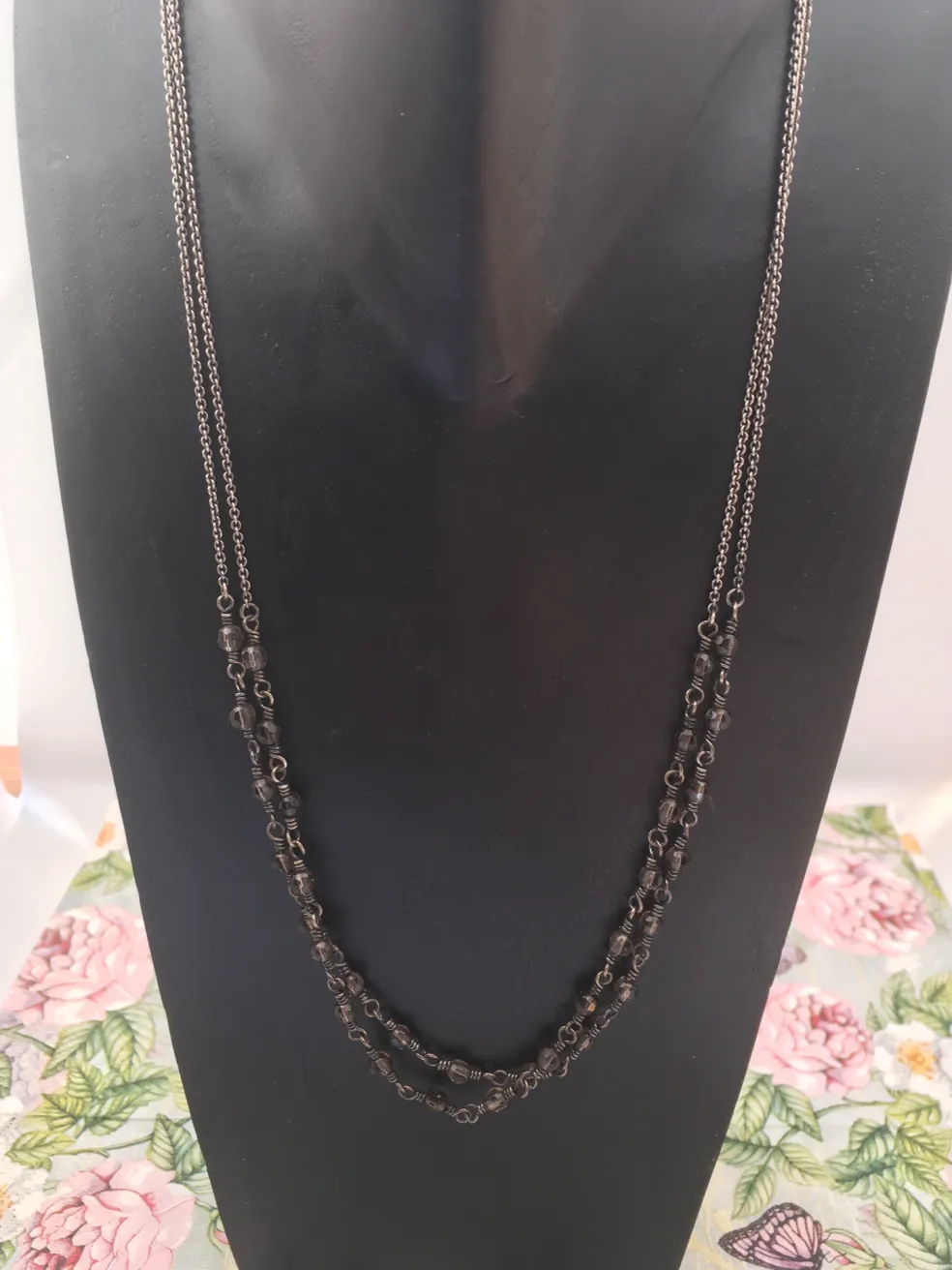 Ketting in geoxideerd zilver van Carré jewellery met geslepen smoked topaas(bruin).Bestaat uit 2 kettingen …