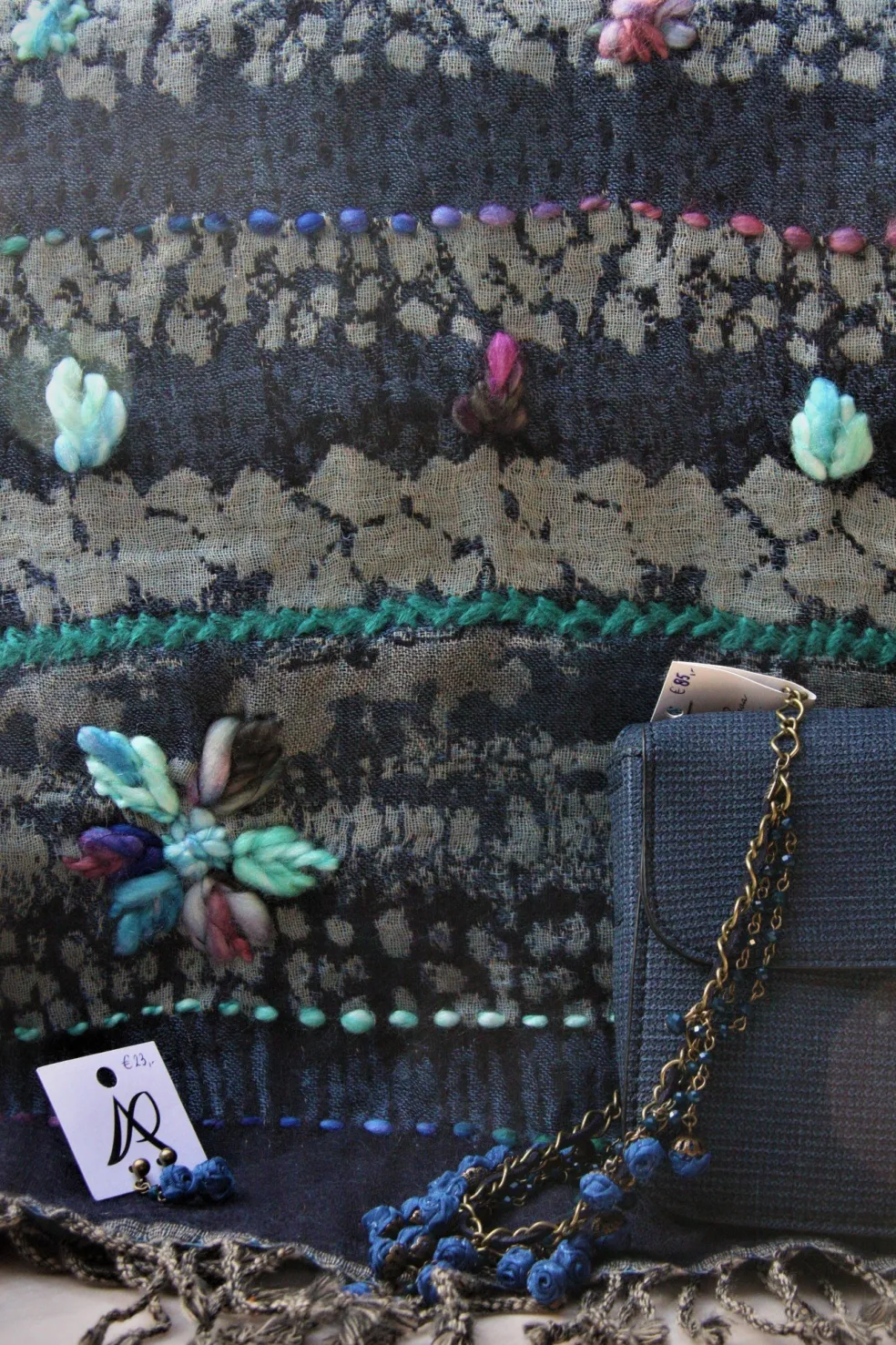 100%wolHandgemaakt in Indië.180cm op 70cm Donkerblauw met kleurrijke details